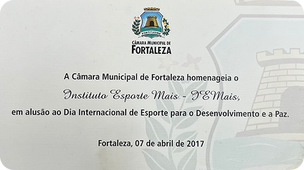 Homenageado pela Câmara de Vereadores de Fortaleza pelo Dia Internacional de Esporte para o Desenvolvimento e pela Paz.