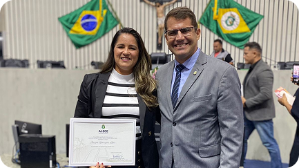 A Presidente, Jessyca Rodrigues, é homenageada na Assembleia Legislativa do Ceará em homenagem aos Profissionais de Educação Física.