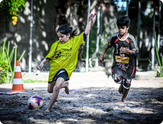 O Instituto Esporte Mais promove competições pedagógicas de futebol, adequadas às faixas etárias dos participantes, utilizando a metodologia do Futebol 3 Tempos. Este formato valoriza não apenas a performance esportiva, mas também princípios educacionais como respeito às regras, solidariedade, equidade e fair play.